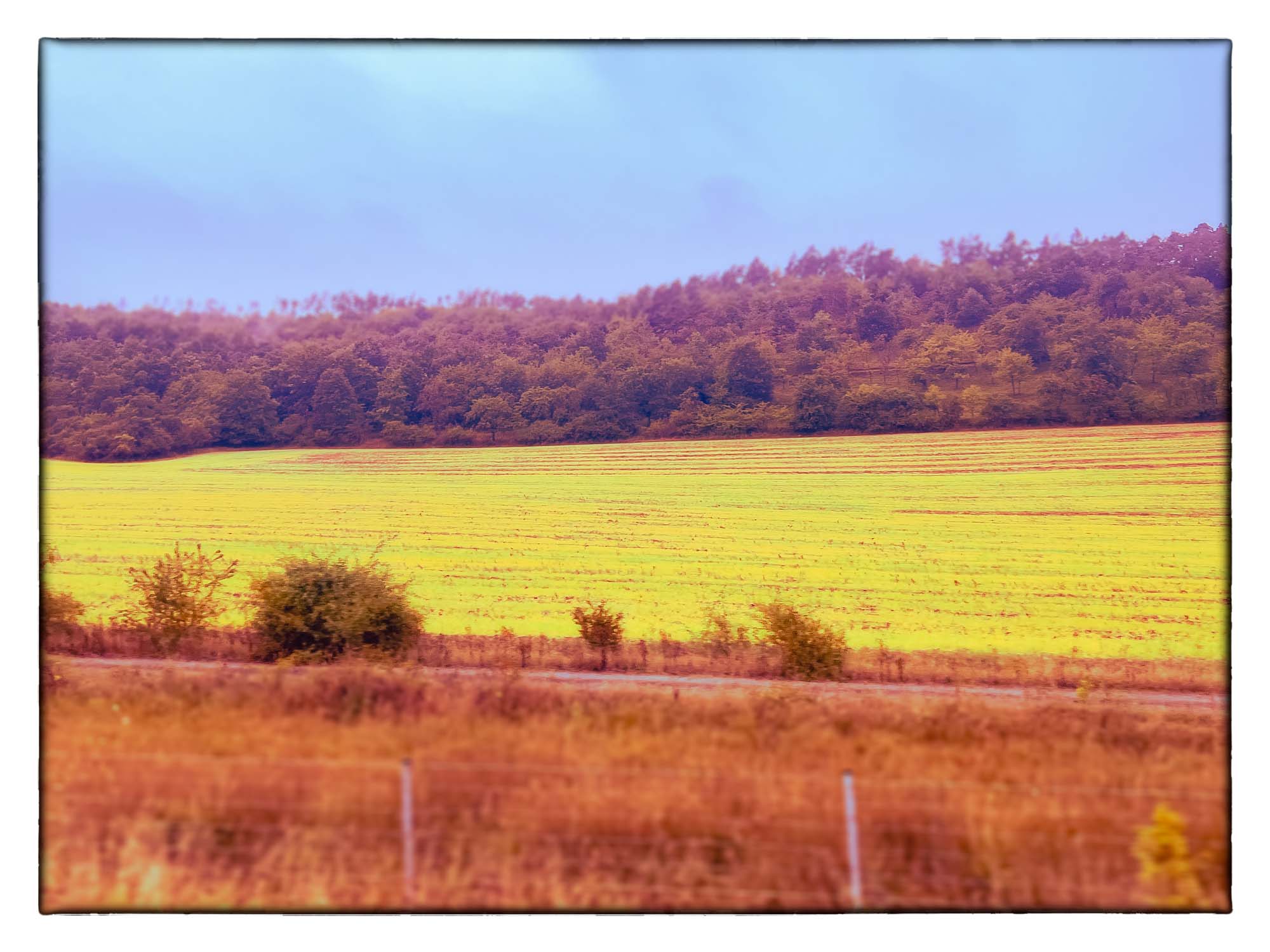 Flüchtige Landschaften ziehen wie in einem Traum an mir vorbei. Wir fahren auf der Autobahn und zwischen Nýřany und Benešovice. Diese Gegend habe ich schon oft gesehen, doch immer wieder wirkt sie neu auf mich ein.